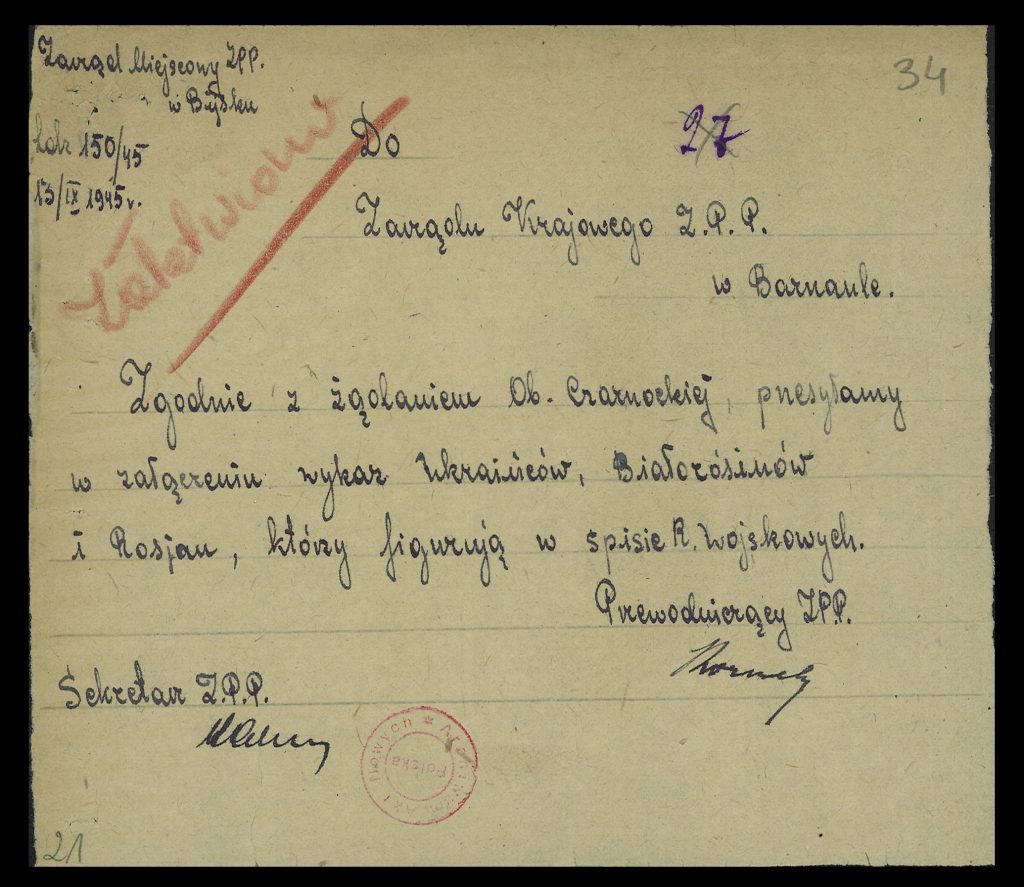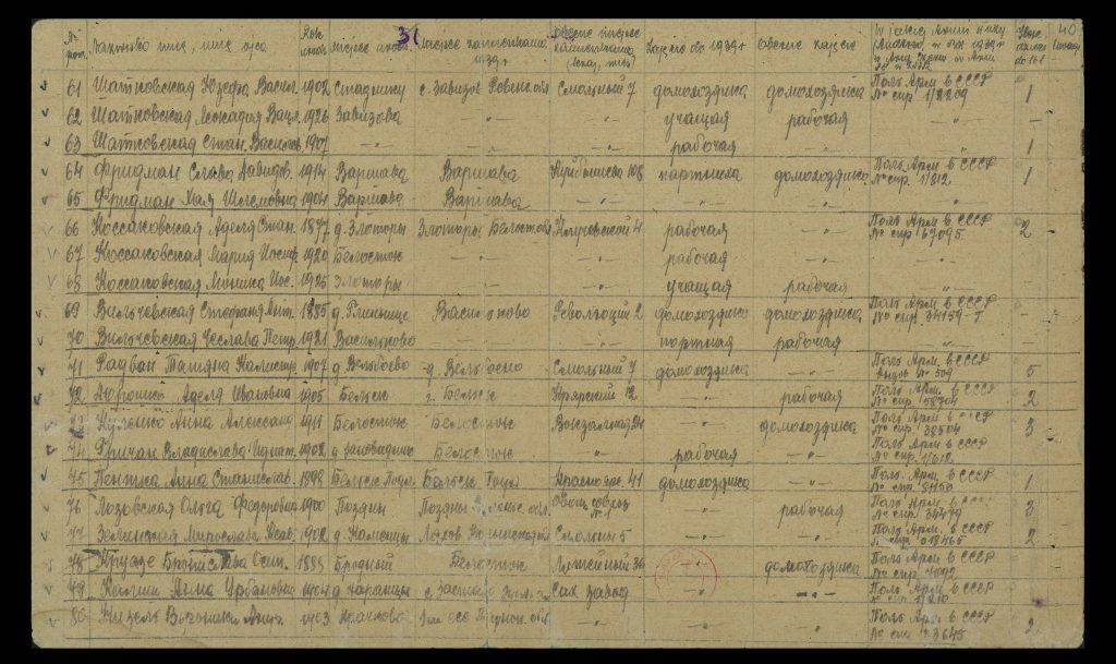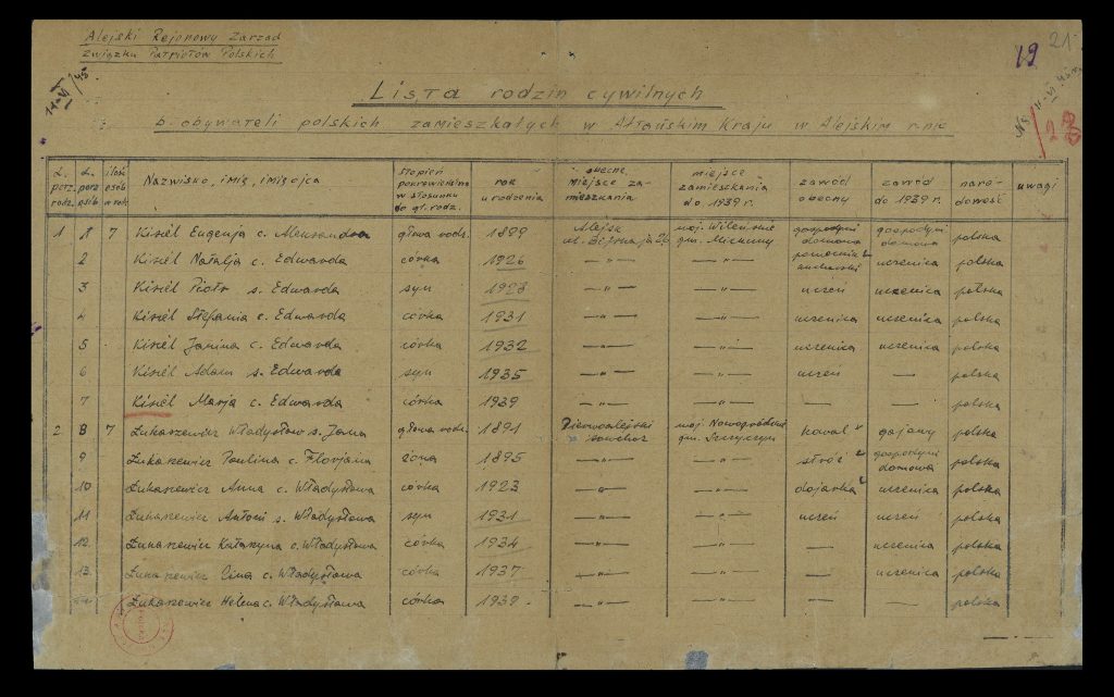 Ci, którym udało się przeżyć trafili pod opiekę Związku Patriotów Polskich (tak zwanych patriotów). To dzięki temu mamy dziś archiwalia z Ałtajskiego Kraju, z których możemy wyłonić imiona i nazwiska tych, którzy dotrwali do 1945-46 roku