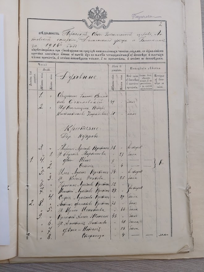 1916 rok – spis parafian Cerkwi w Poreczu (międzywojenna Gmina Łużki Powiatu Dzisieńskiego)