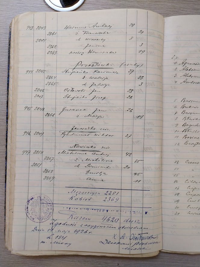 1926 rok – Spis parafian Kościoła rzymskokatolickiego w Miorach w Powiecie Brasławskim