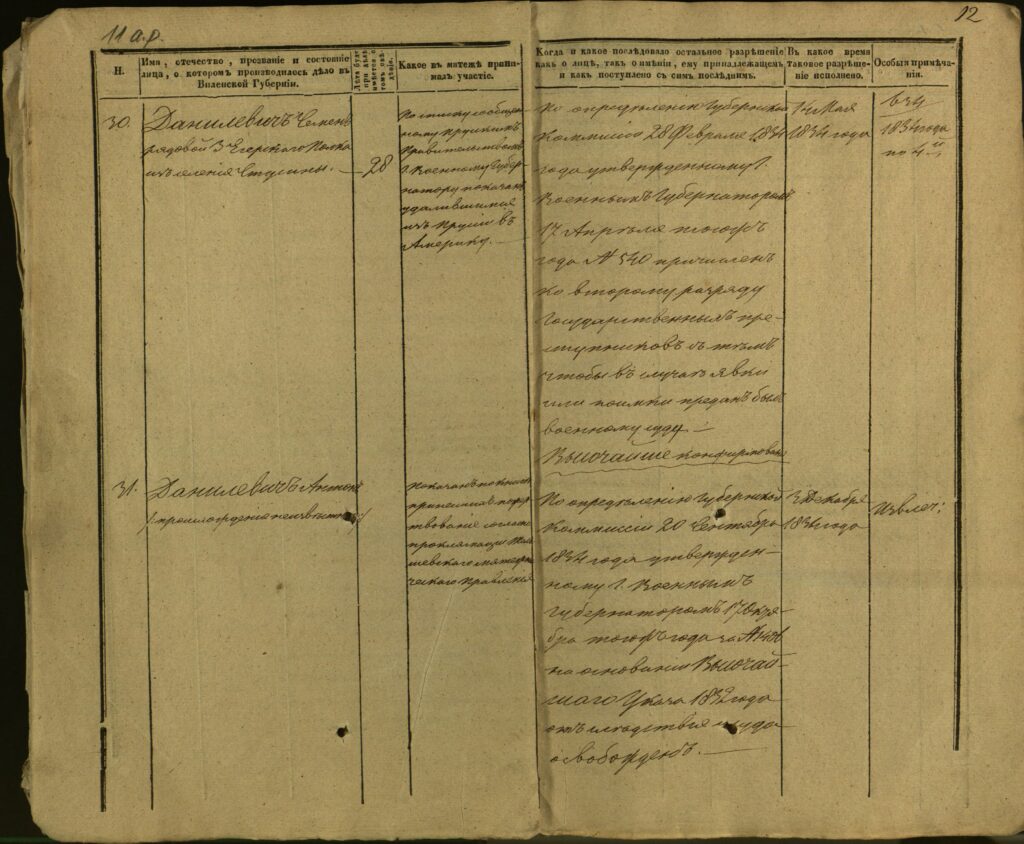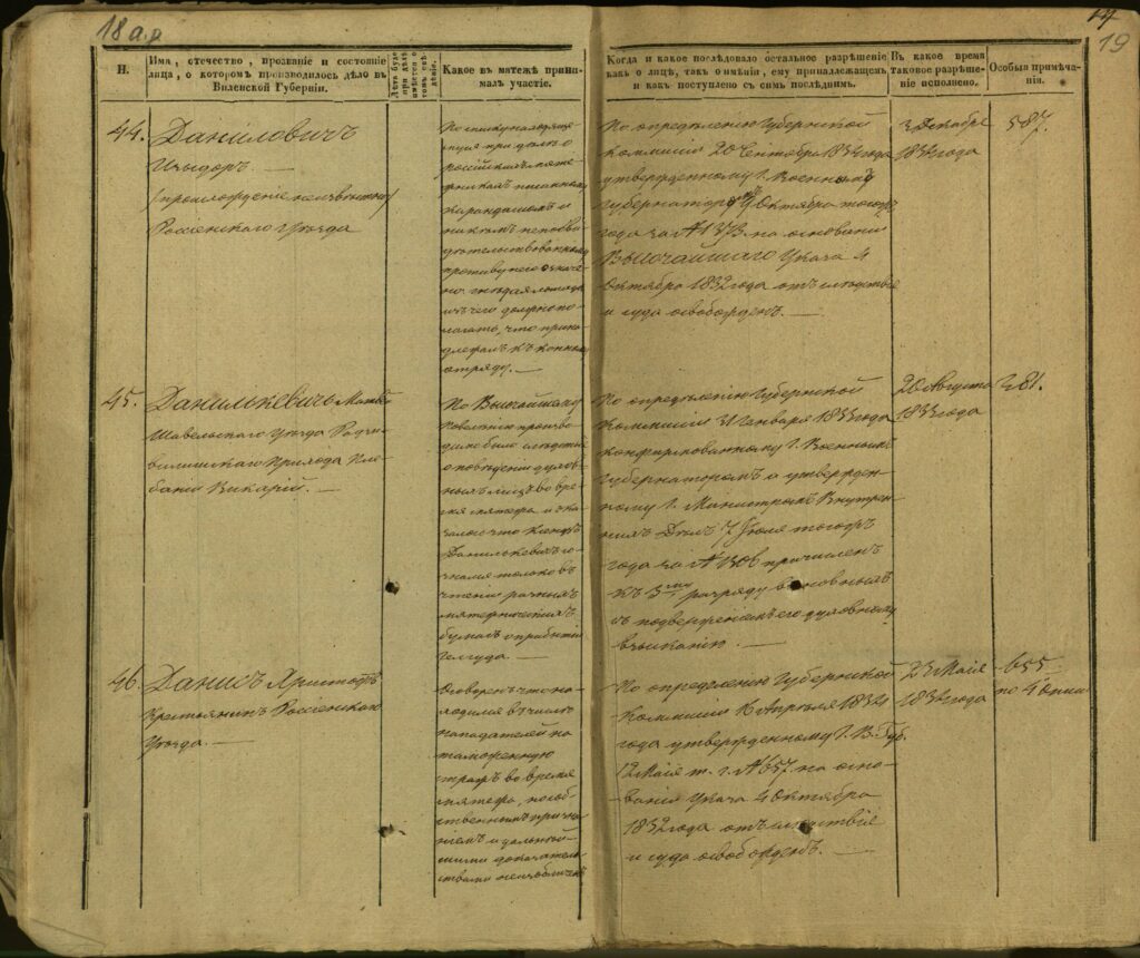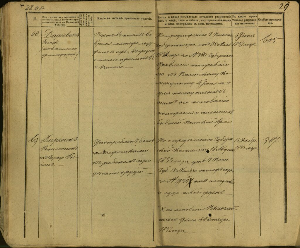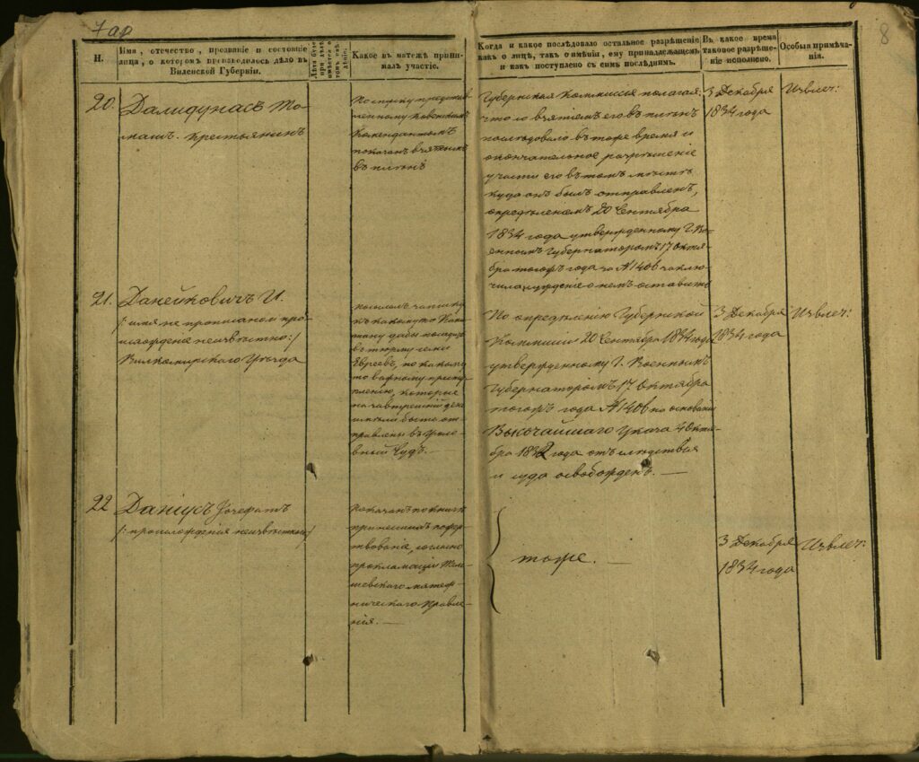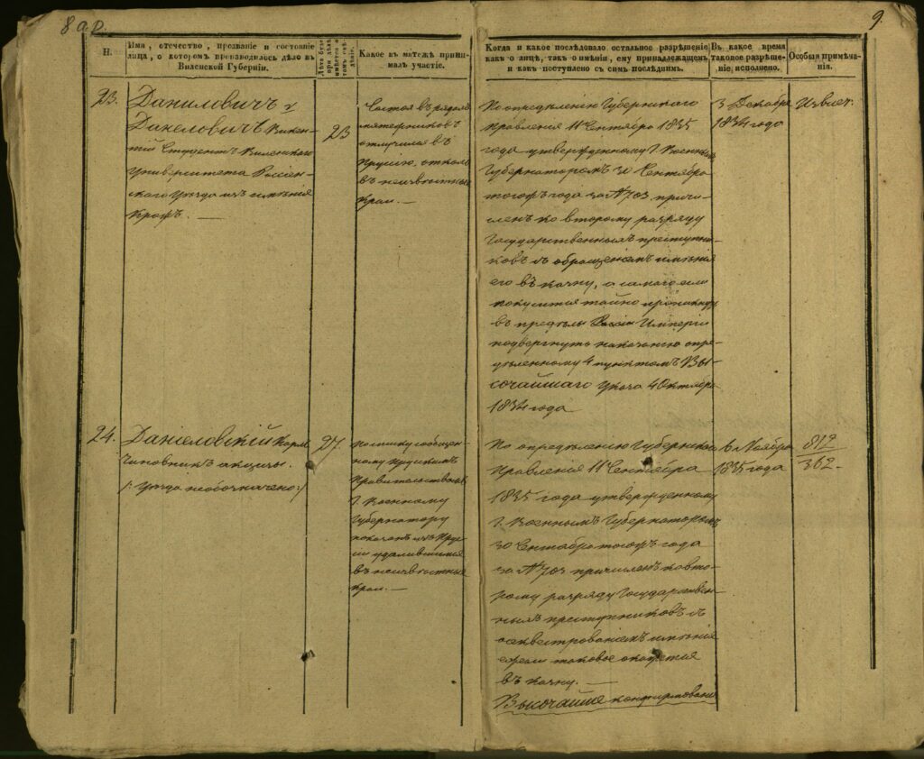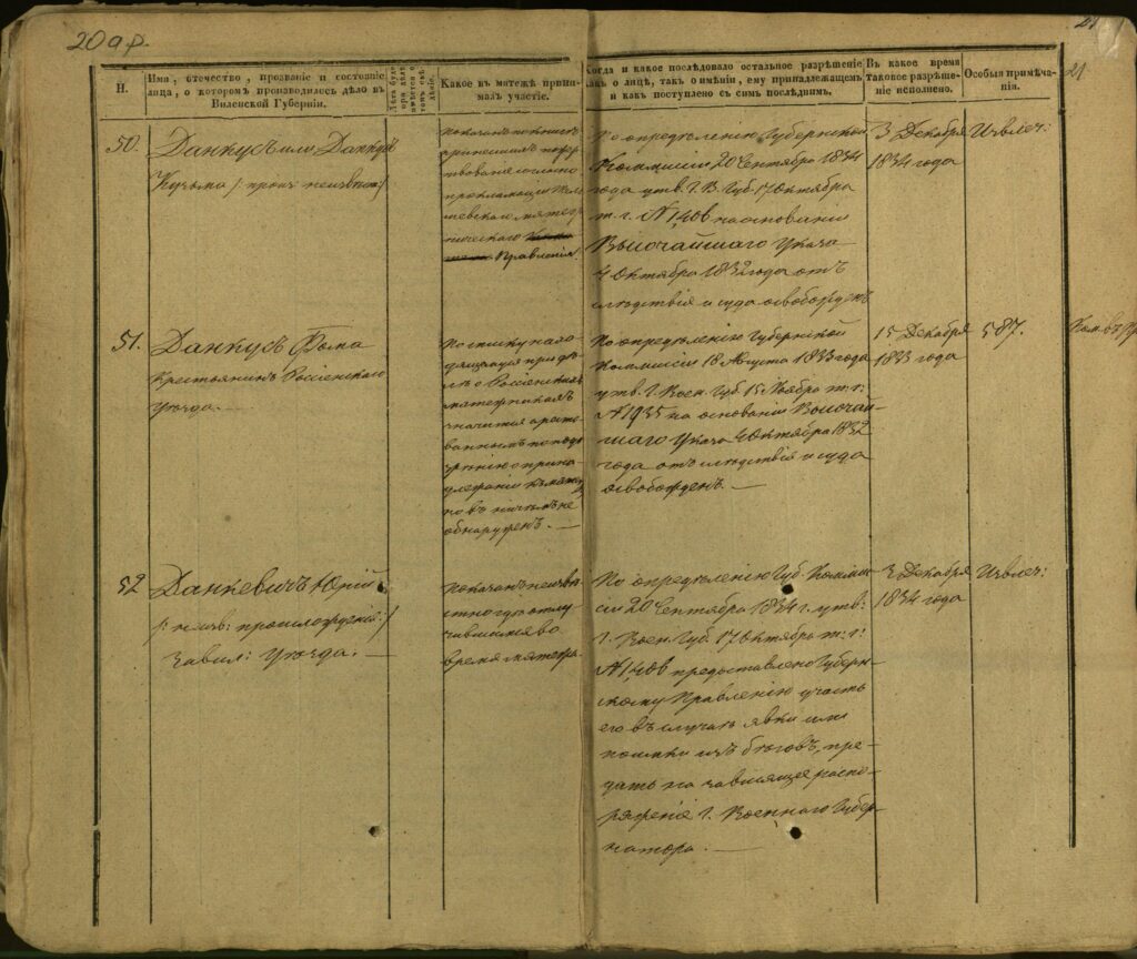 Spis uczestników Powstania Listopadowego z postawionymi przez władze carskie zarzutami – Gubernia Kowieńska – część 1 (nazwiska rozpoczynające się na literę D)