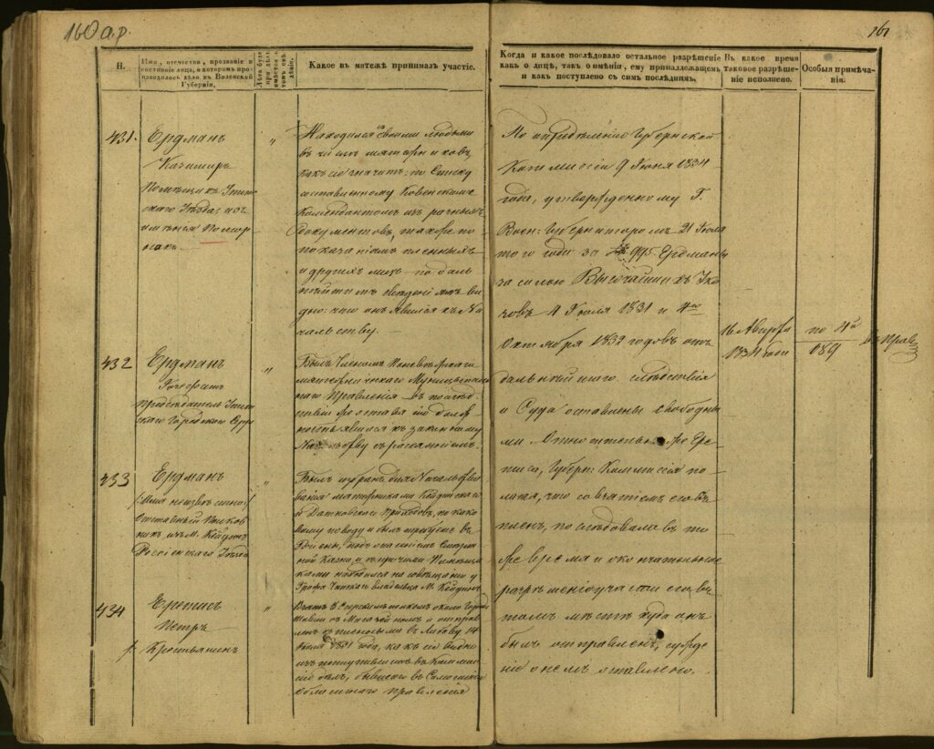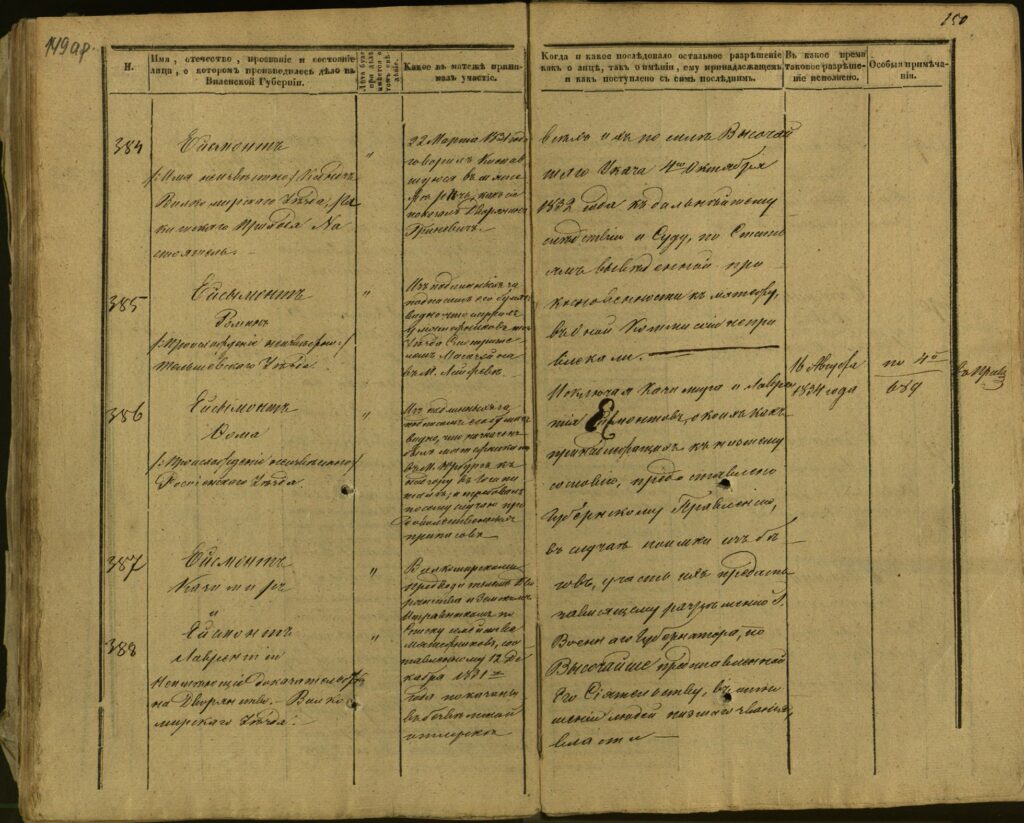 Spis uczestników Powstania Listopadowego z postawionymi przez władze carskie zarzutami – Gubernia Kowieńska – część 5 (nazwiska rozpoczynające się na JE)