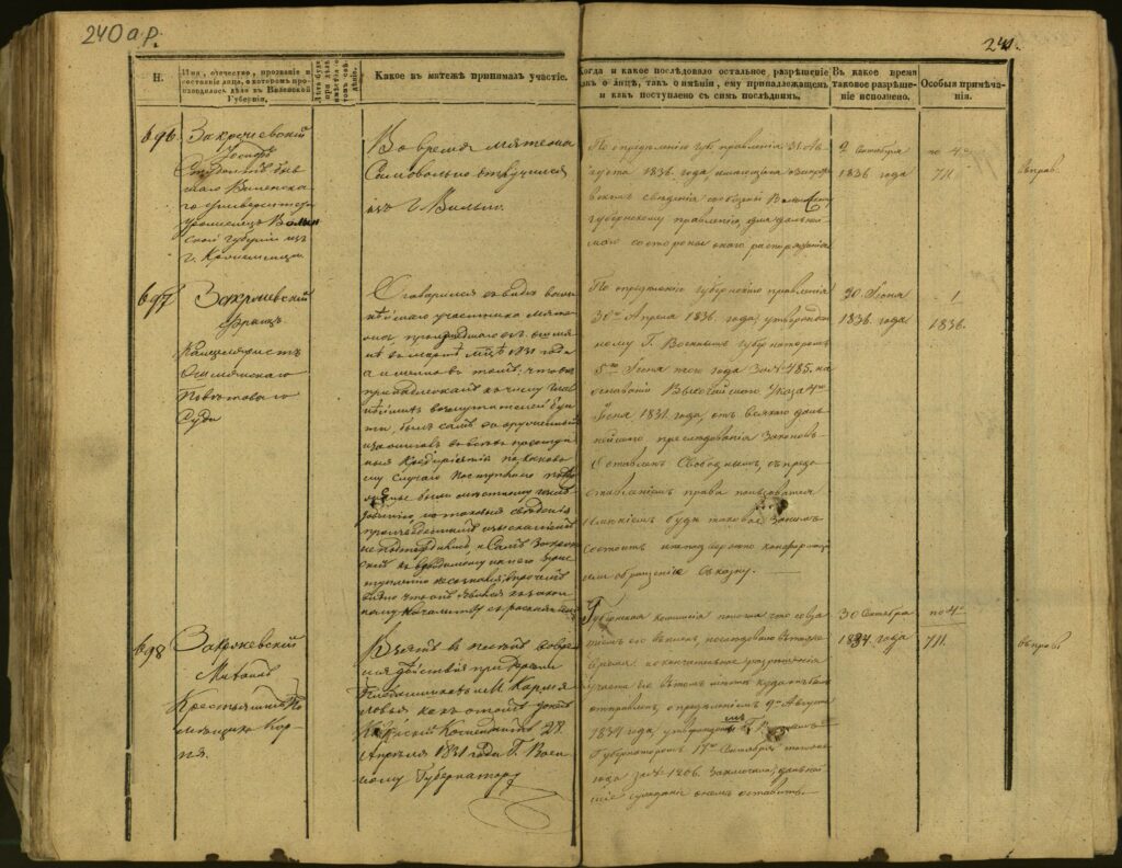 Spis uczestników Powstania Listopadowego z postawionymi przez władze carskie zarzutami – Gubernia Kowieńska – część 9 (nazwiska rozpoczynające się na Z)