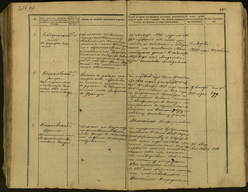 Spis uczestników Powstania Listopadowego z postawionymi przez władze carskie zarzutami – Gubernia Kowieńska – część 14 (nazwiska rozpoczynające się na K)