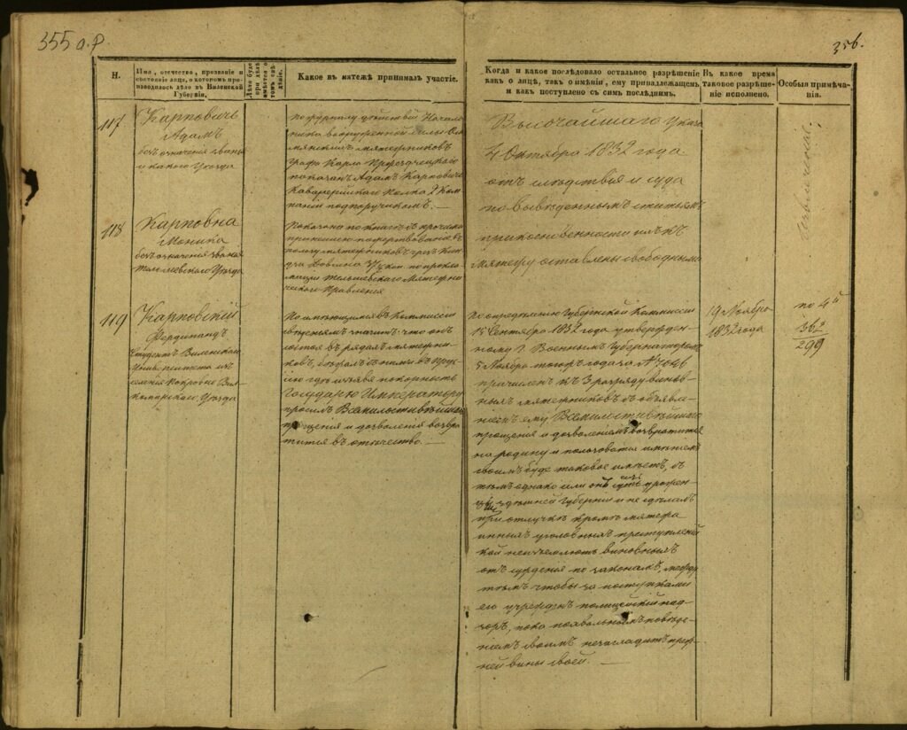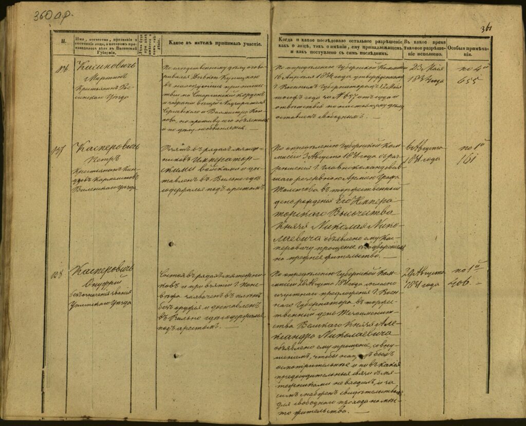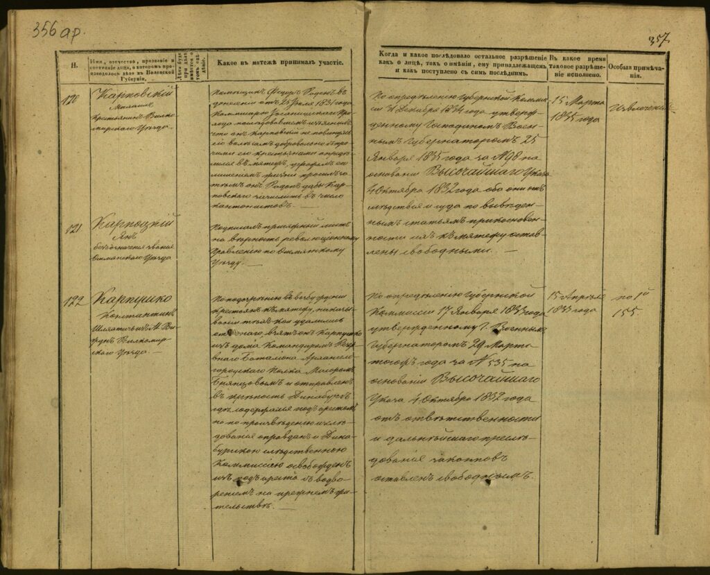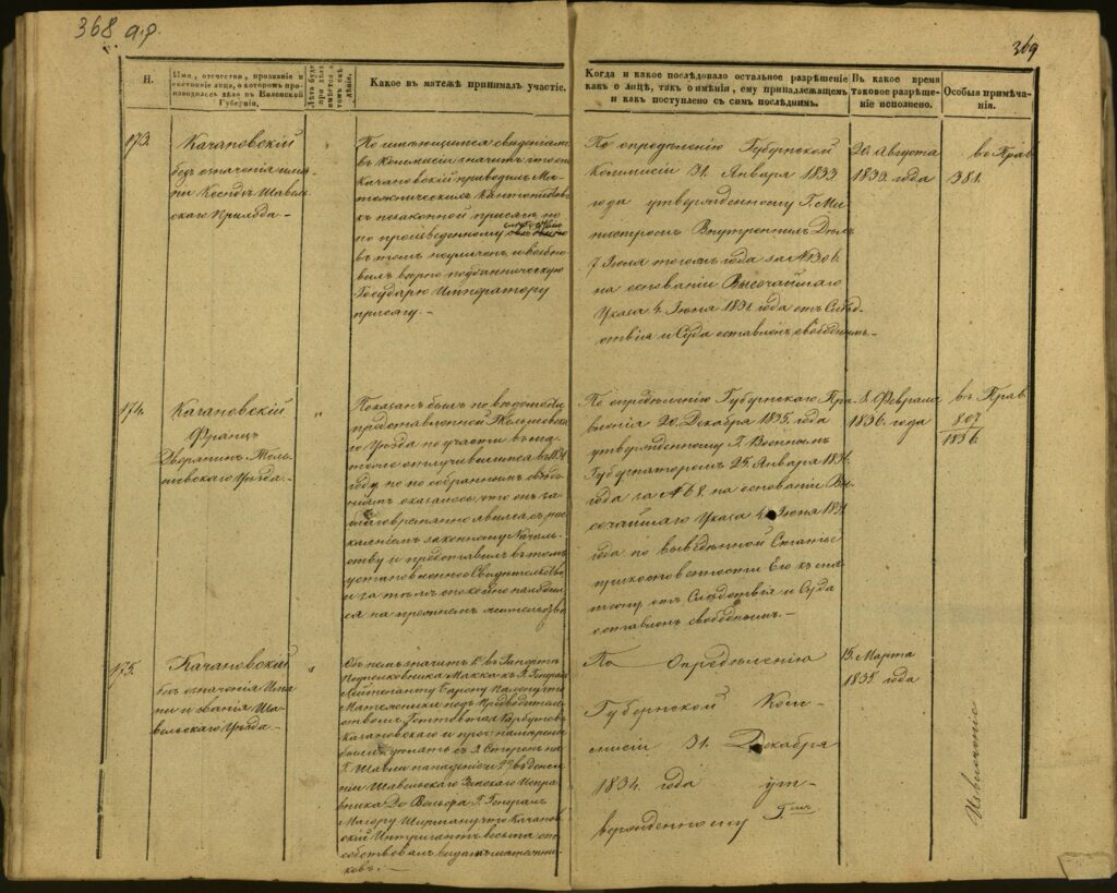 Spis uczestników Powstania Listopadowego z postawionymi przez władze carskie zarzutami – Gubernia Kowieńska – część 15 (nazwiska rozpoczynające się na K)