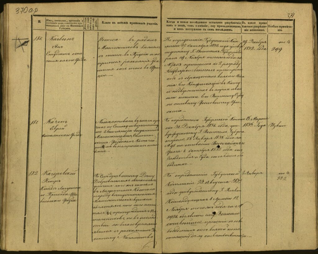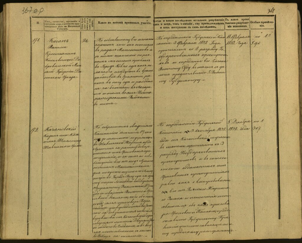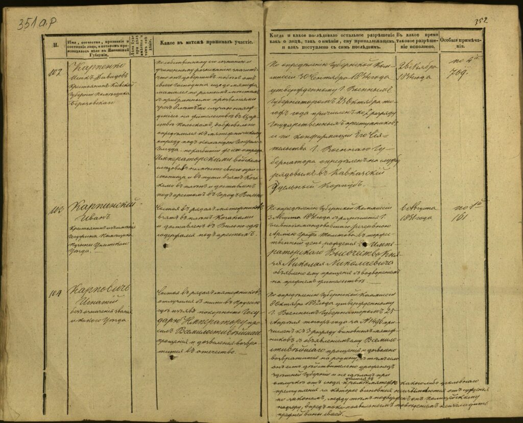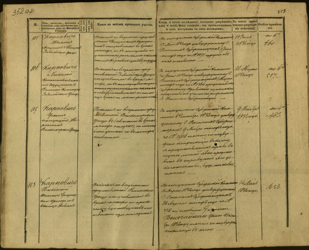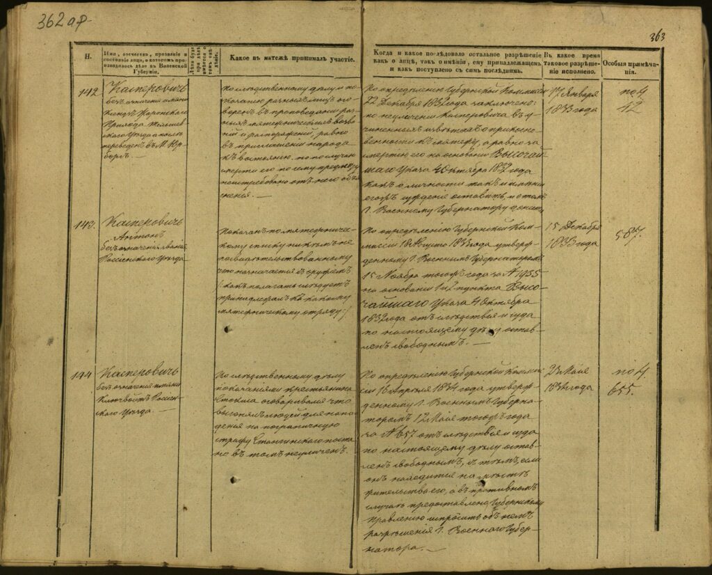 Spis uczestników Powstania Listopadowego z postawionymi przez władze carskie zarzutami – Gubernia Kowieńska – część 15 (nazwiska rozpoczynające się na K)