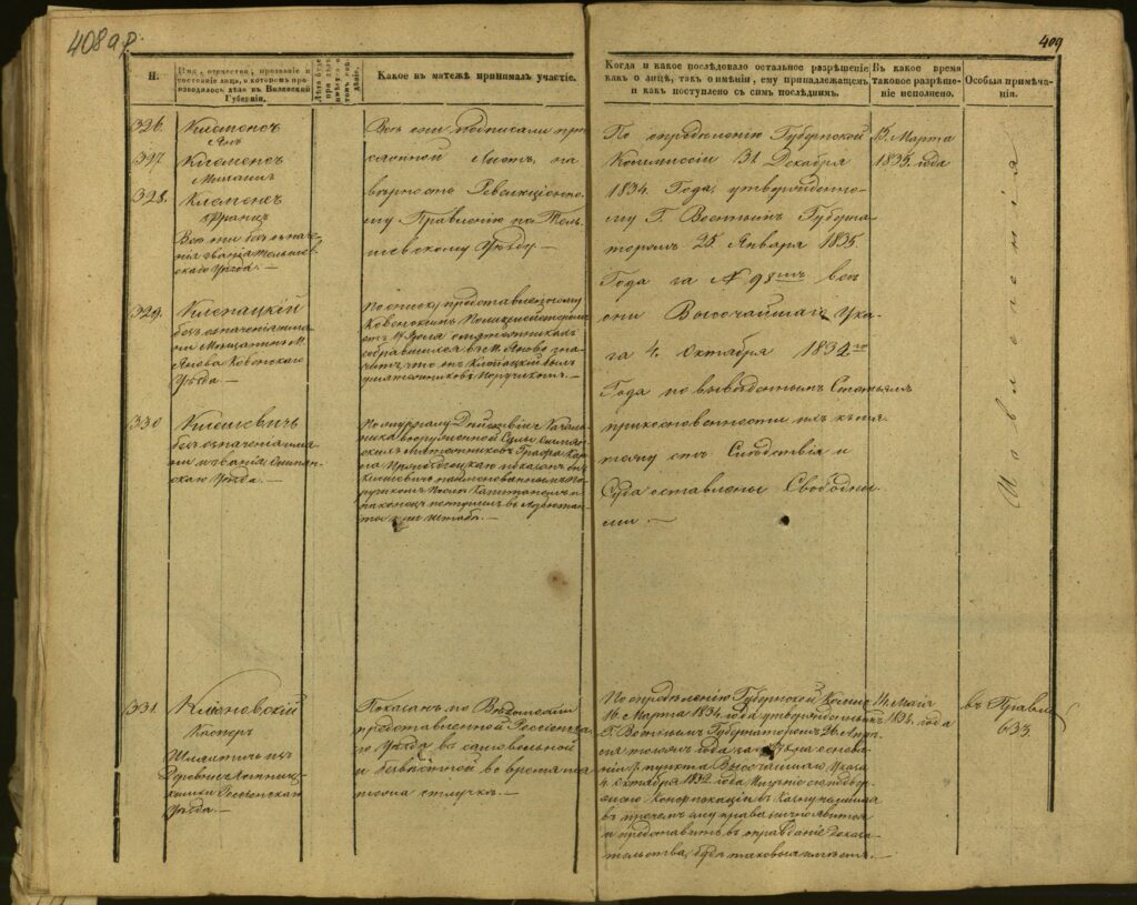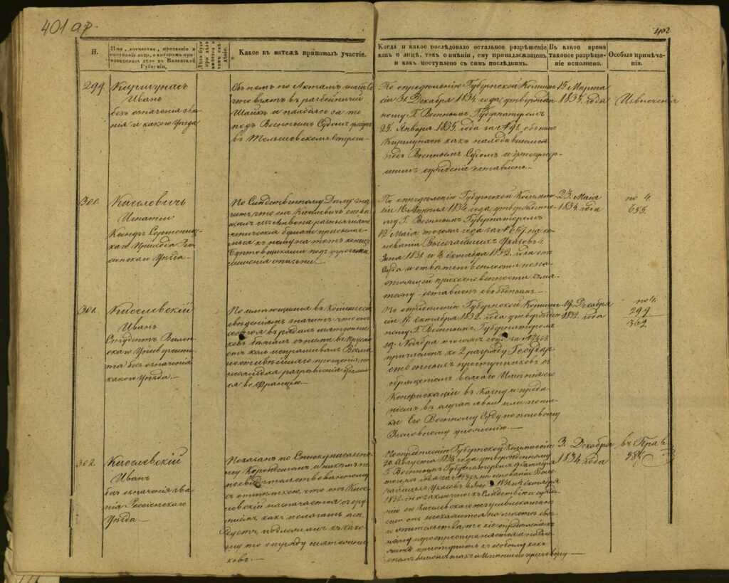 Spis uczestników Powstania Listopadowego z postawionymi przez władze carskie zarzutami – Gubernia Kowieńska – część 17 (nazwiska rozpoczynające się na K)