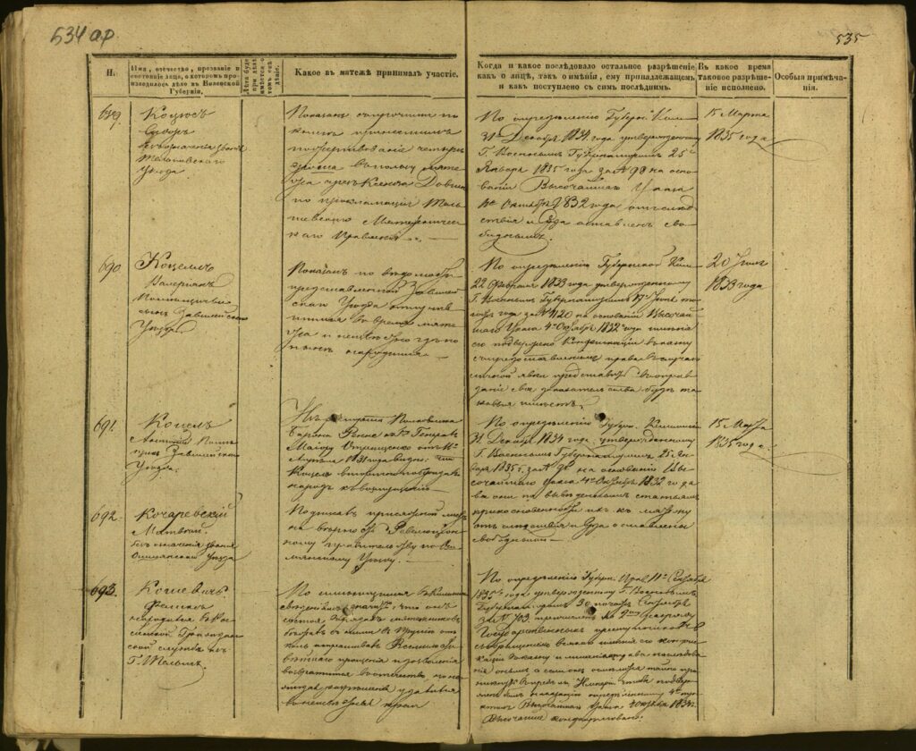 Spis uczestników Powstania Listopadowego z postawionymi przez władze carskie zarzutami – Gubernia Kowieńska – część 22 (nazwiska rozpoczynające się na K)