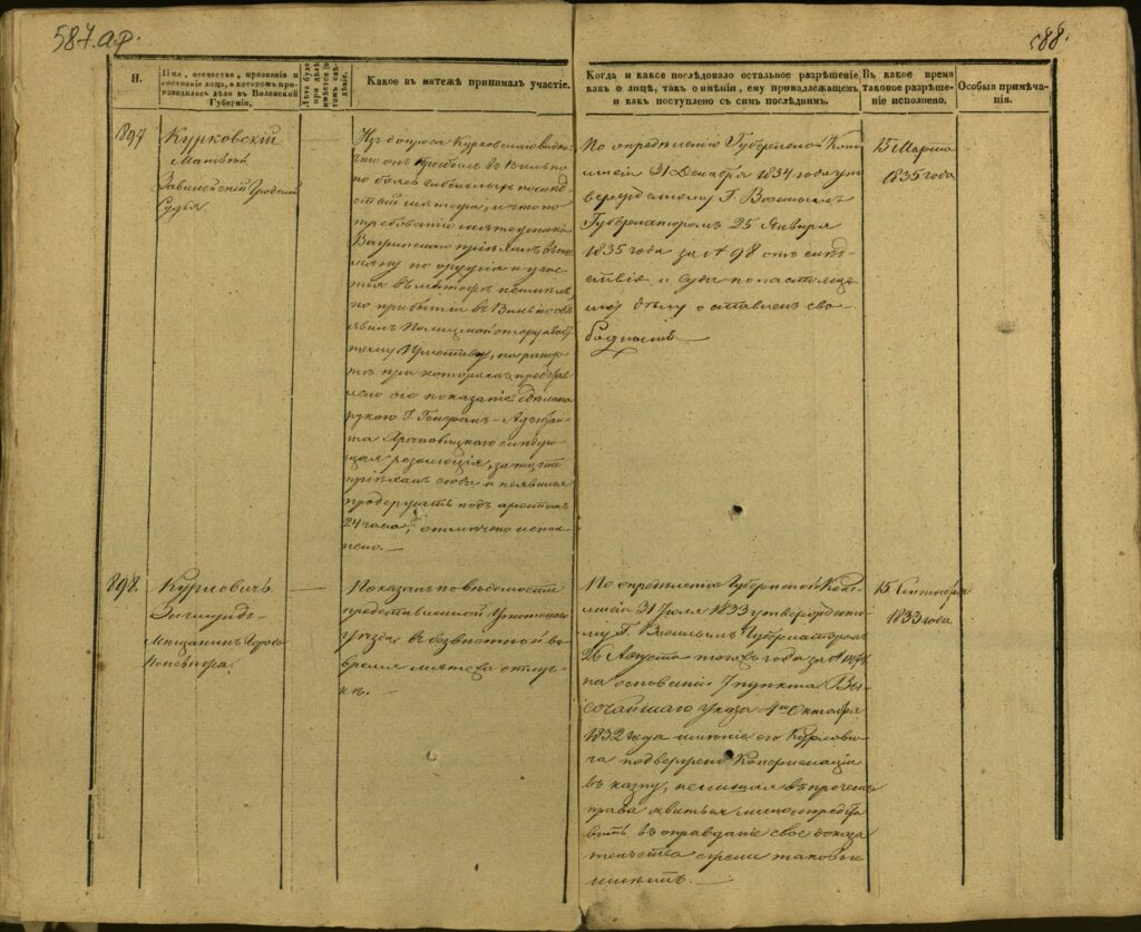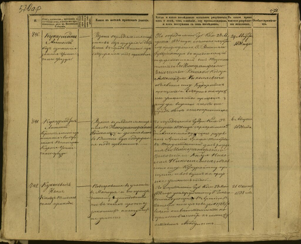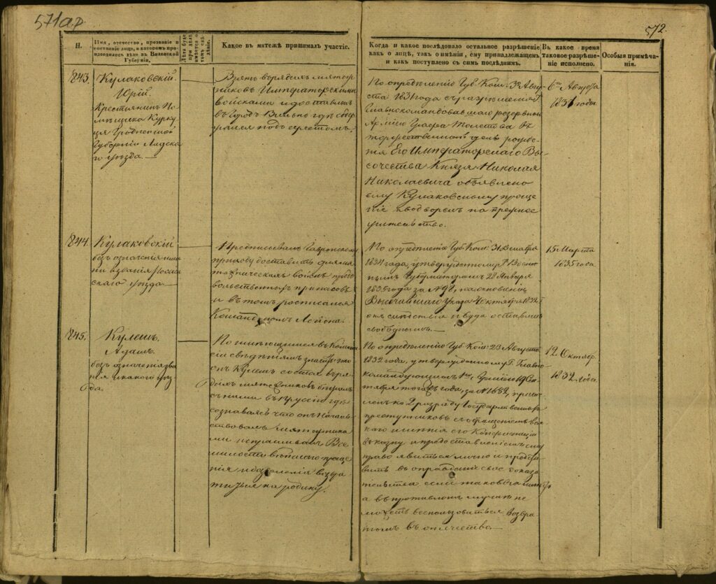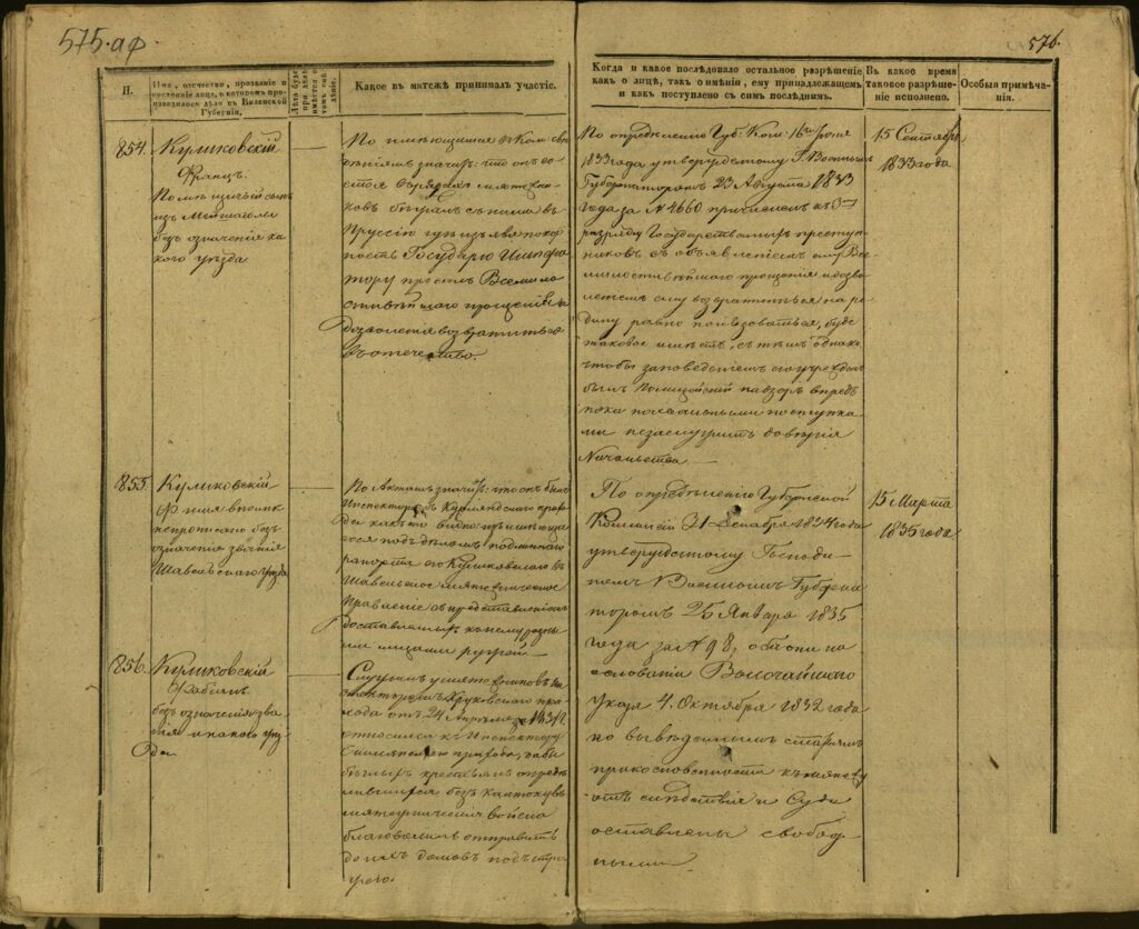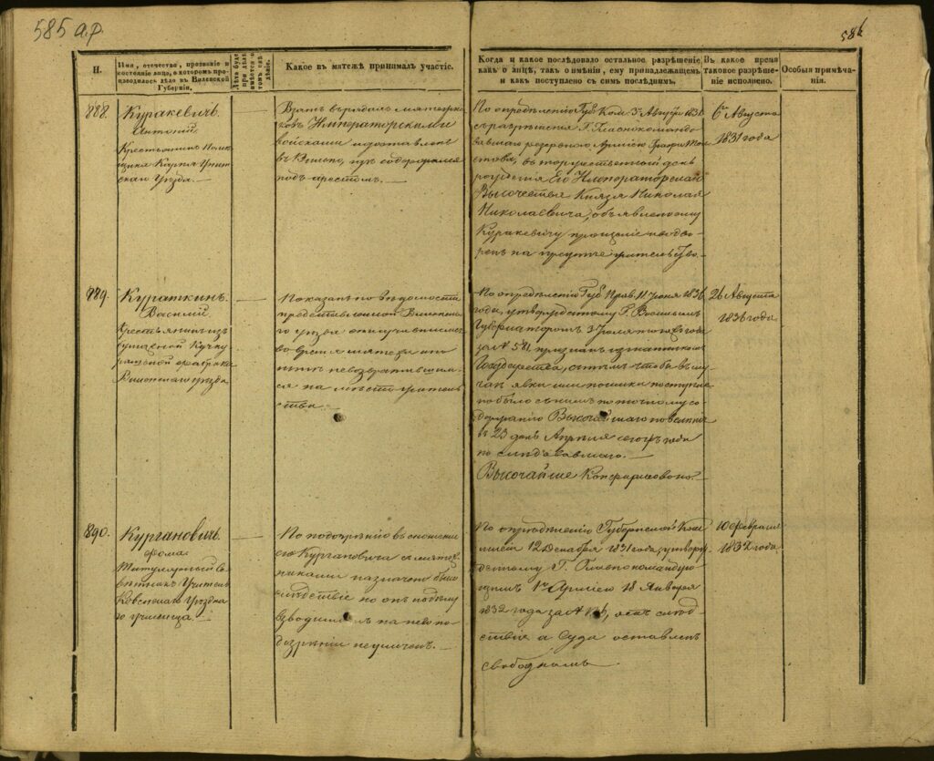 Spis uczestników Powstania Listopadowego z postawionymi przez władze carskie zarzutami – Gubernia Kowieńska – część 24 (nazwiska rozpoczynające się na K)