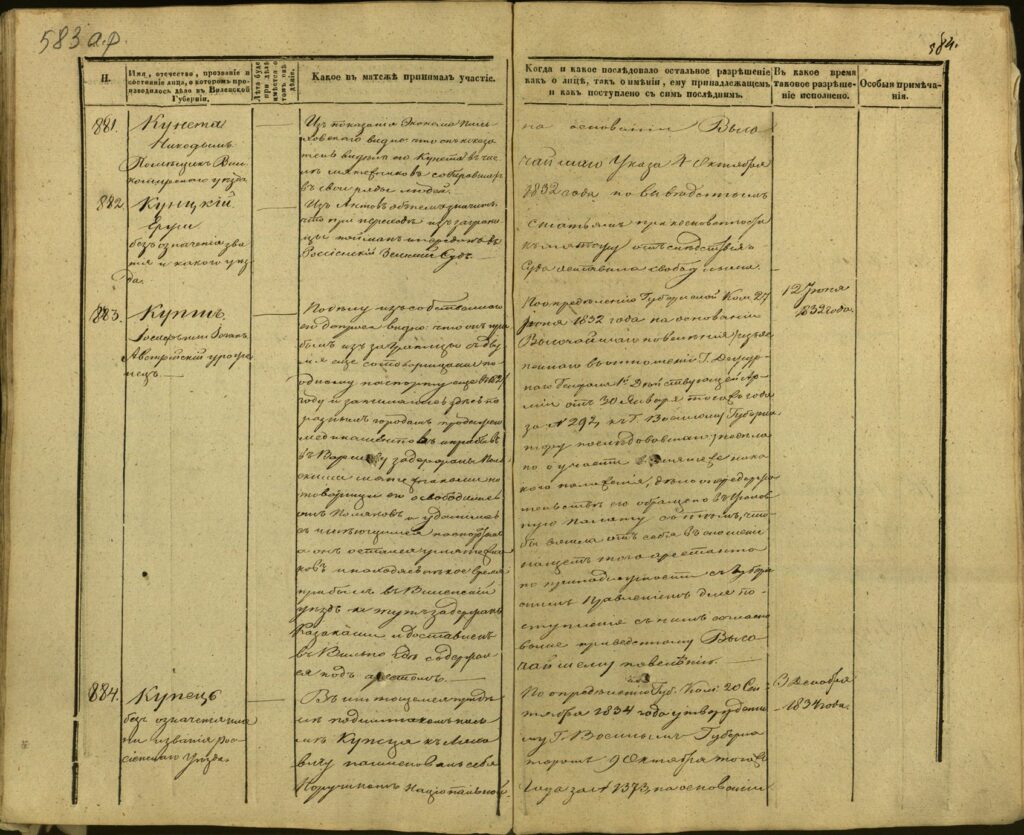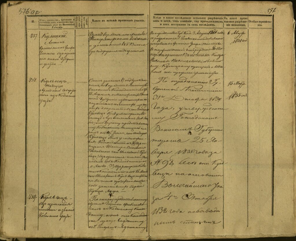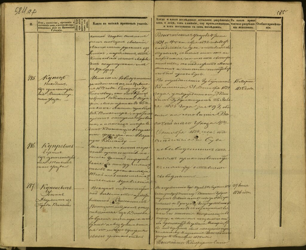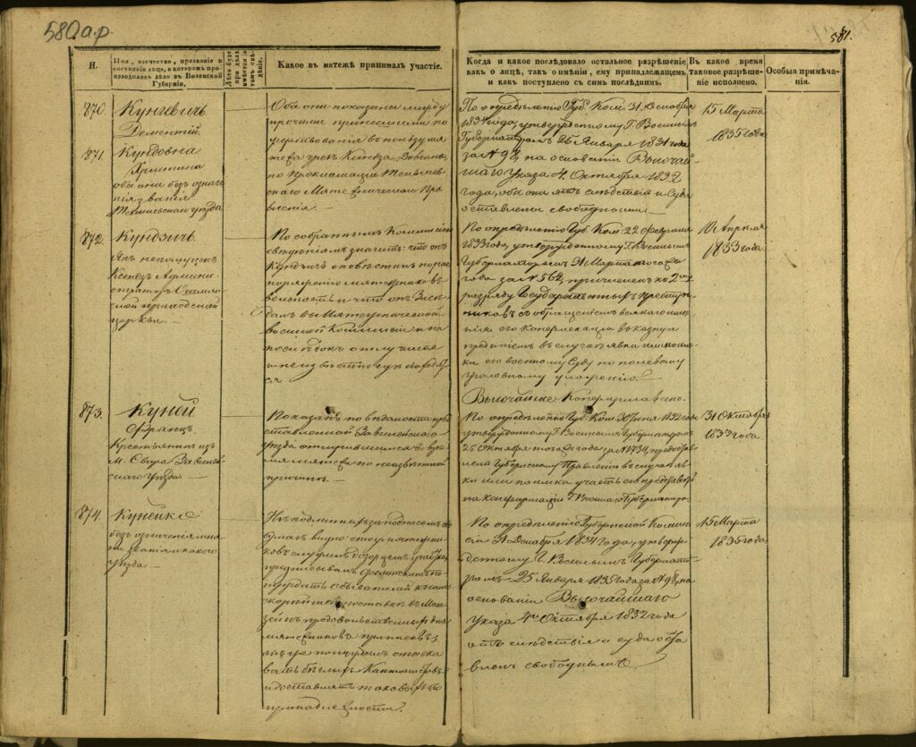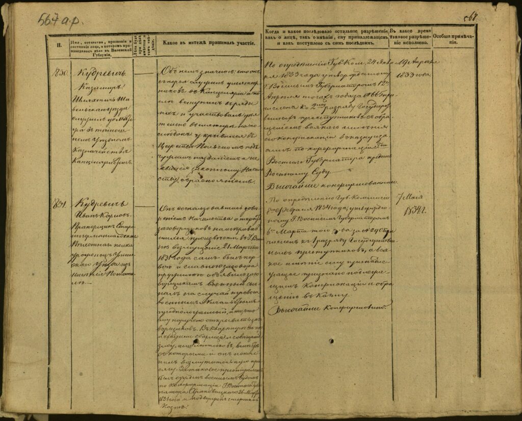 Spis uczestników Powstania Listopadowego z postawionymi przez władze carskie zarzutami – Gubernia Kowieńska – część 24 (nazwiska rozpoczynające się na K)
