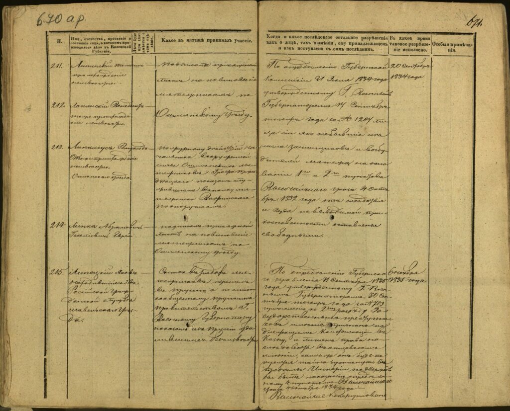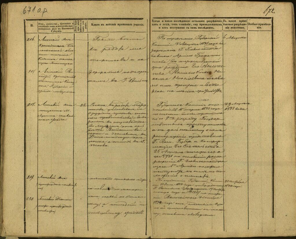 Spis uczestników Powstania Listopadowego z postawionymi przez władze carskie zarzutami – Gubernia Kowieńska – część 27 (nazwiska rozpoczynające się na L)