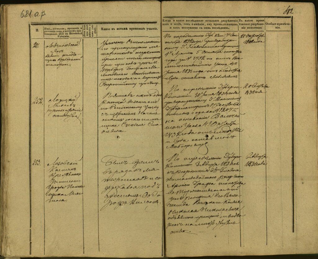 Spis uczestników Powstania Listopadowego z postawionymi przez władze carskie zarzutami – Gubernia Kowieńska – część 31 (nazwiska rozpoczynające się na Ł)
