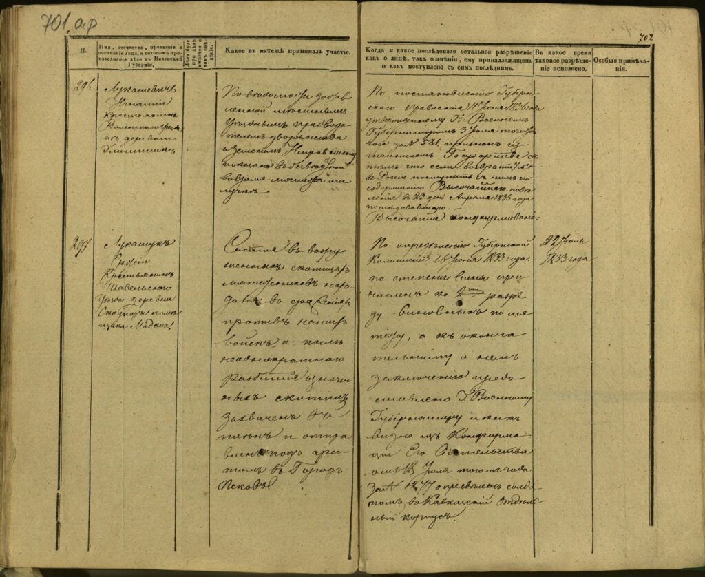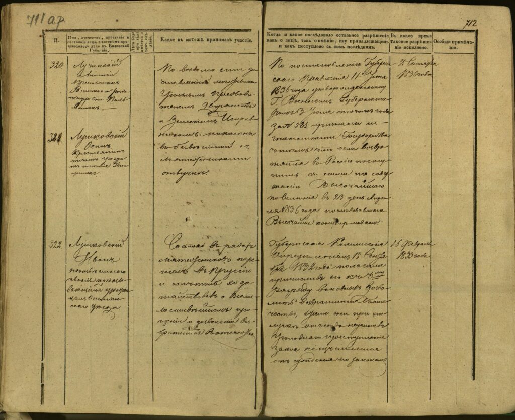 Spis uczestników Powstania Listopadowego z postawionymi przez władze carskie zarzutami – Gubernia Kowieńska – część 33 (nazwiska rozpoczynające się na Ł)