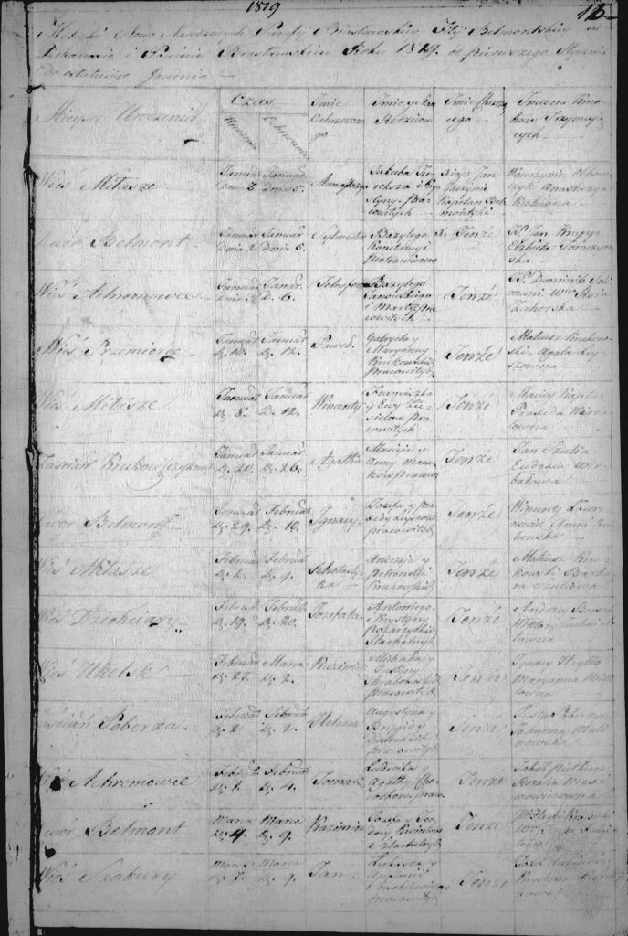 Księgi kościelne Belmontu (filia kościoła w Brasławiu) rok 1819