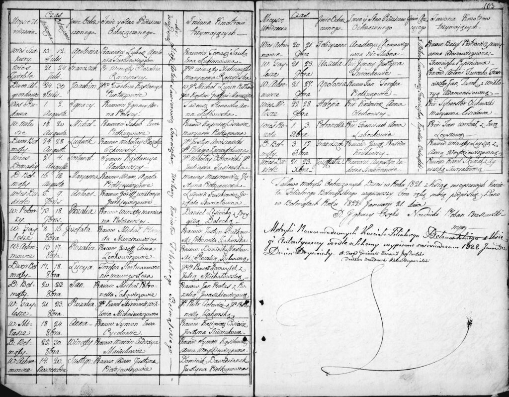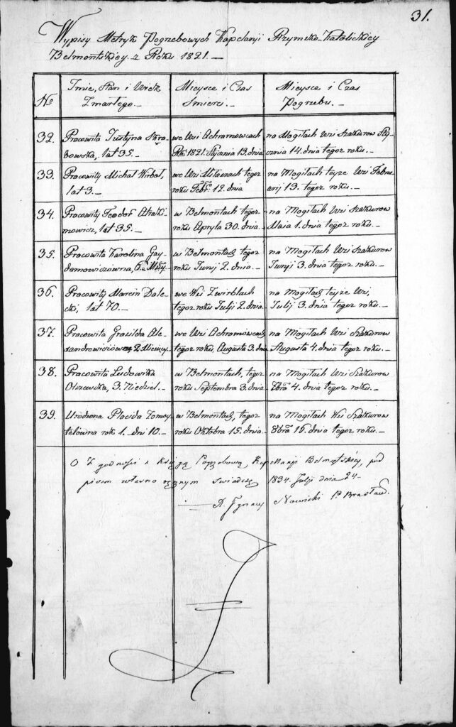 Księgi kościelne Belmontu (filia kościoła w Brasławiu) rok 1821