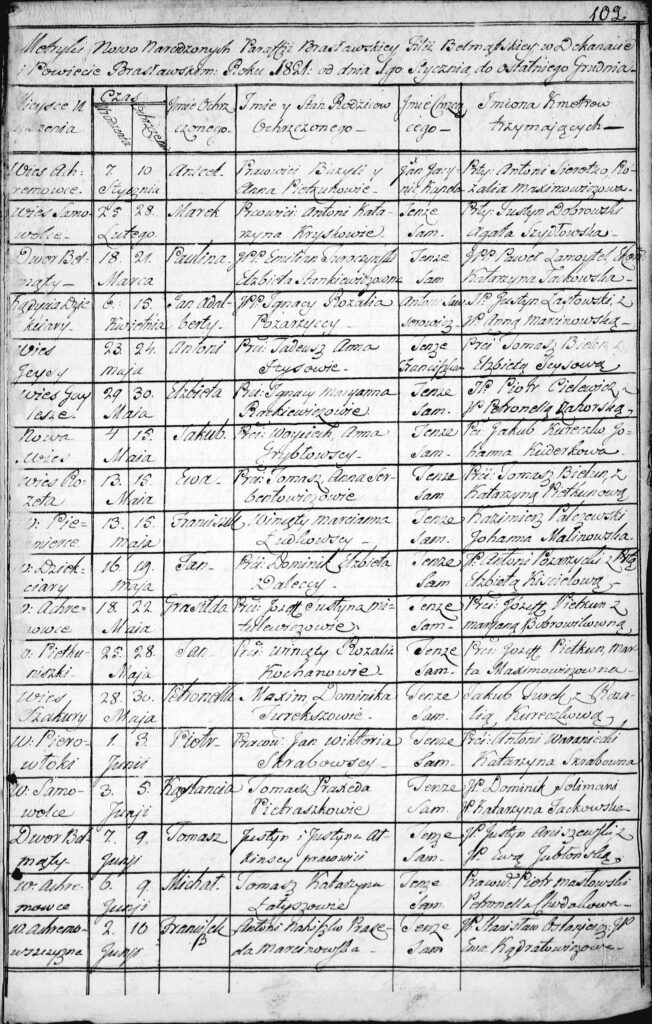 1. Wpisy o chrztach