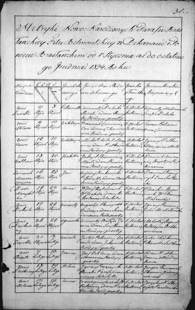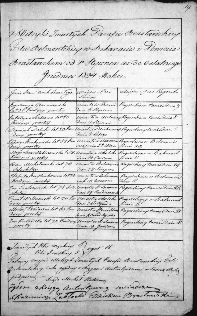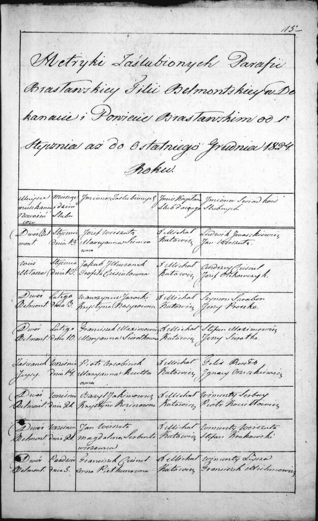 Księgi kościelne Belmontu (filia kościoła w Brasławiu) rok 1824