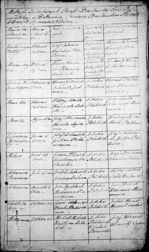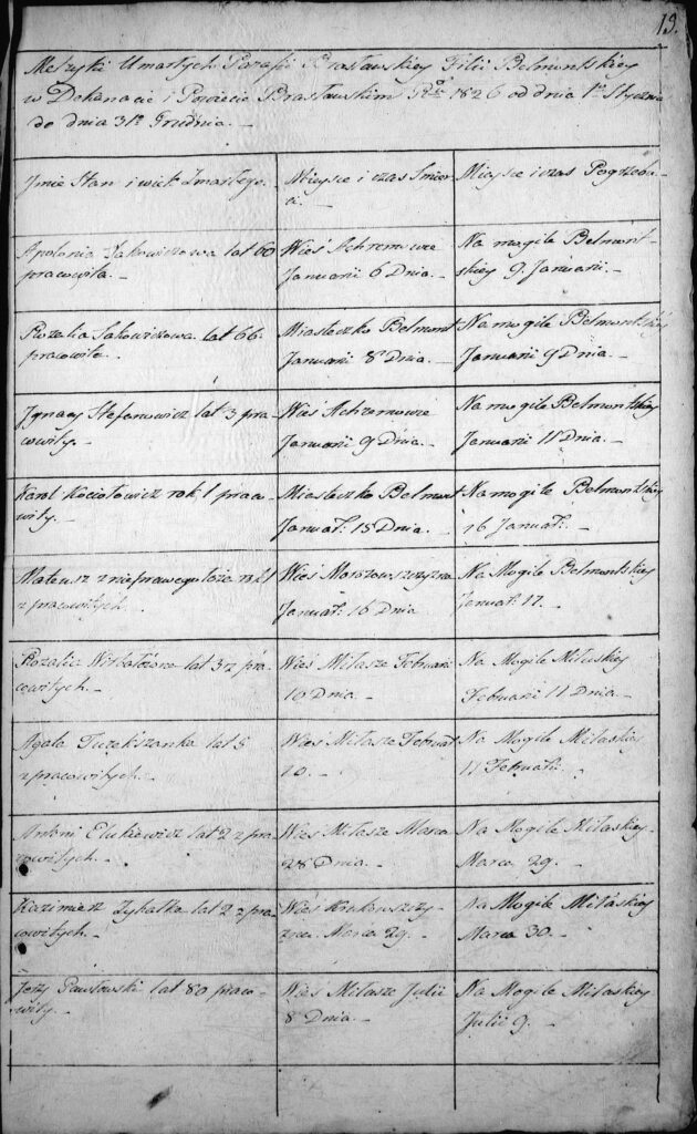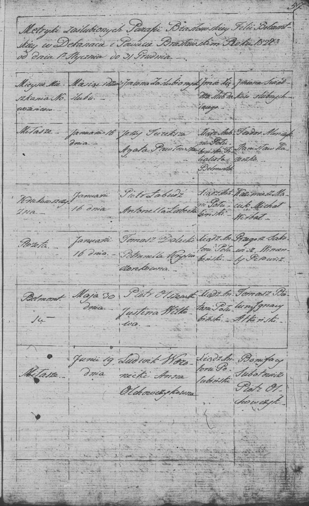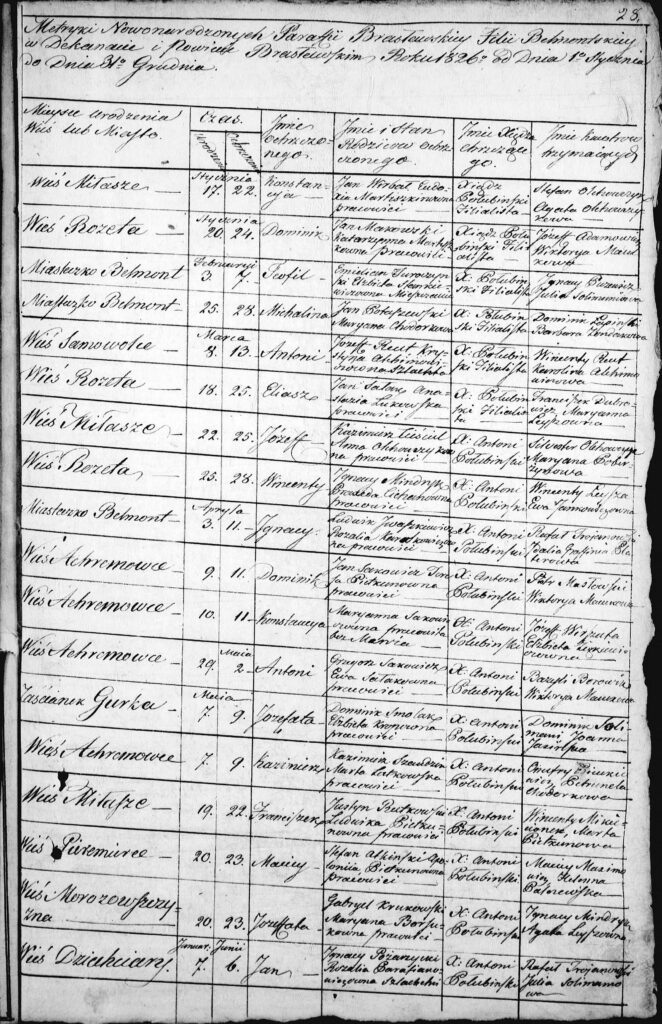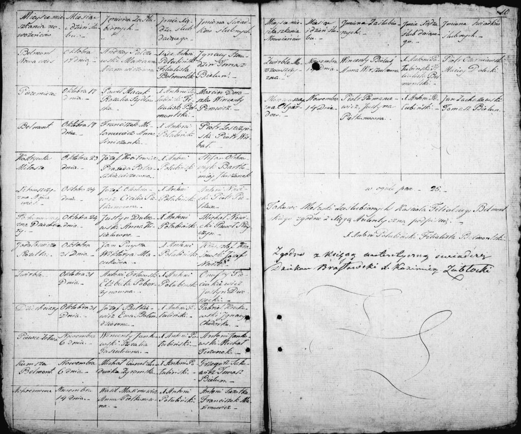 Księgi kościelne Belmontu (filia kościoła w Brasławiu) rok 1826