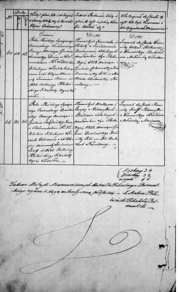 Księgi kościelne Belmontu (filia kościoła w Brasławiu) rok 1828